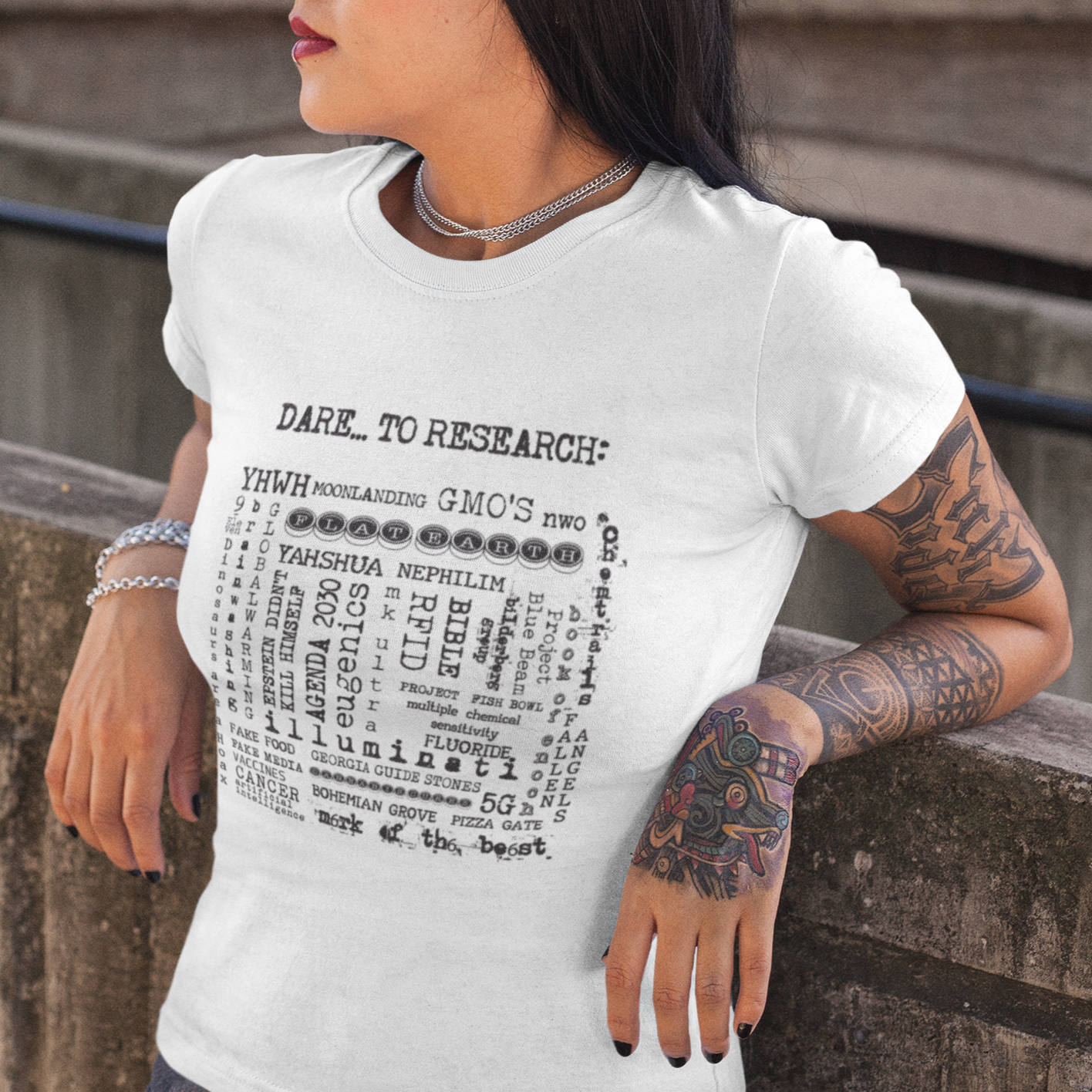 Soft, fitted, and unafraid, the Dare To Research tee is a statement piece for truth-seekers who think critically and boldly.